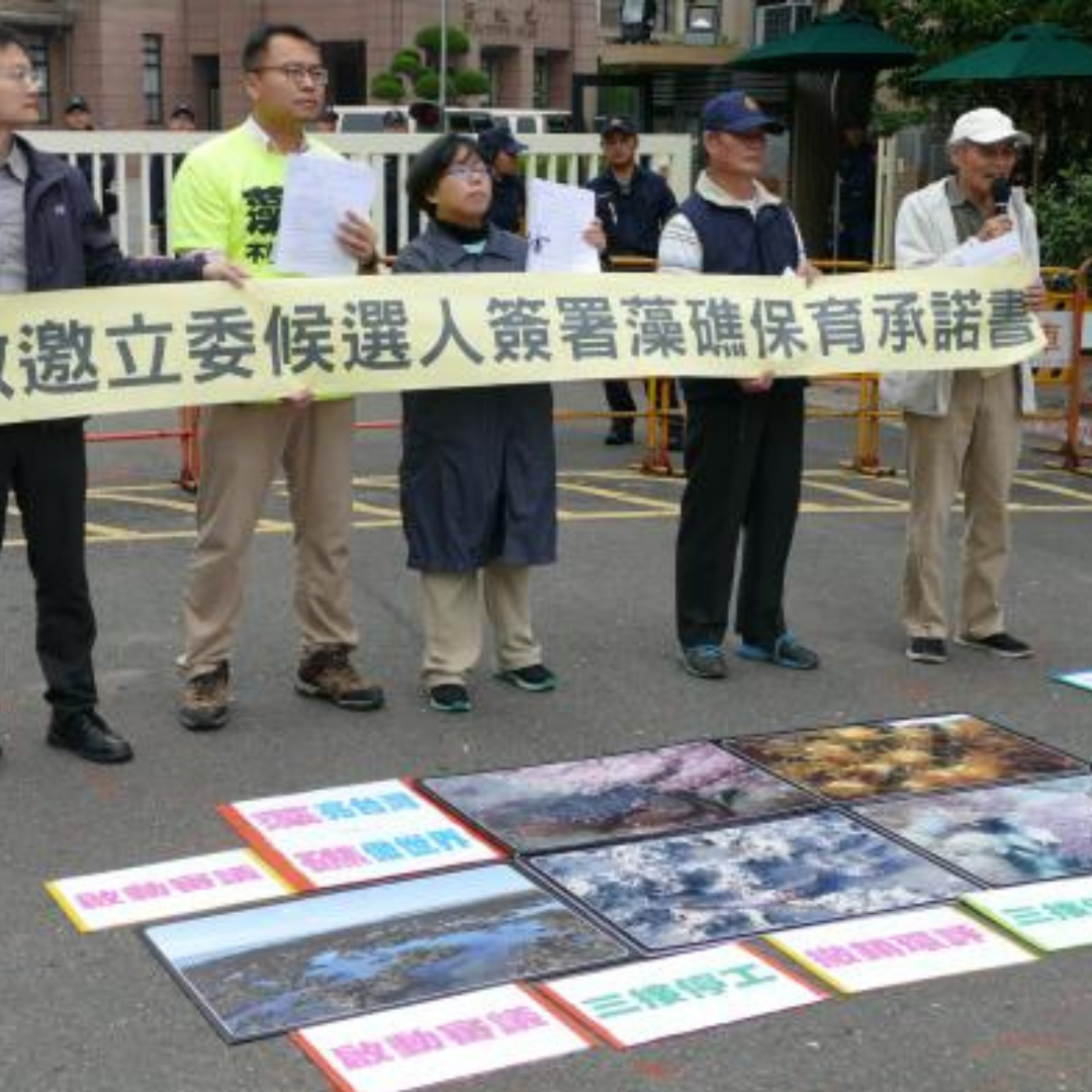 《搶救大潭藻礁第95場記者會》 【承諾書簽署起跑暨三接相關處分起訴】記者會新聞稿 時間:12/18(三)上午9:00 地點:行政院(忠孝東路1段1號) 主辦:搶救大潭藻礁行動聯盟 啟動自然地景審議救藻礁 邀請立委候選人簽署搶救 三接行政訴訟再接再厲 持續爭公義 時至今日,藻礁保育的價值已毋庸贅述;觀塘三接開發案說是依法通過,