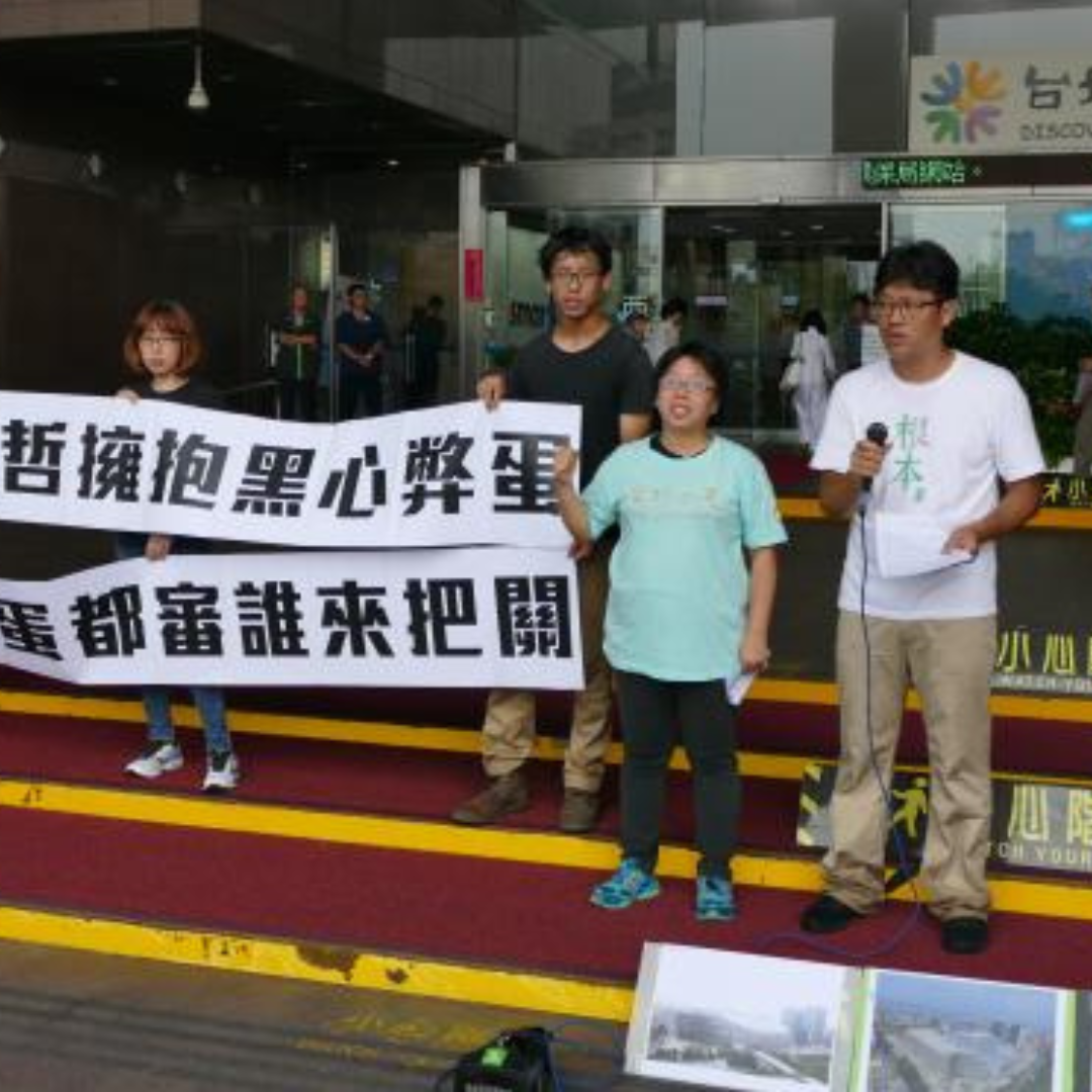 【柯文哲擁抱黑心弊蛋,大巨蛋都審誰來把關】 發稿時間:2018年7月24日 下午13:50 發稿地點:臺北市政府大門口 發稿單位:松菸護樹志工團、松菸公園催生聯盟、台灣護樹團體聯盟、台灣蠻野心足生態協會 今(24日)下午14:30,柯市府重啟大巨蛋都審幹事會的審查程序,長期關心大巨蛋案的公民團體,於會前召開記者會抗議,要